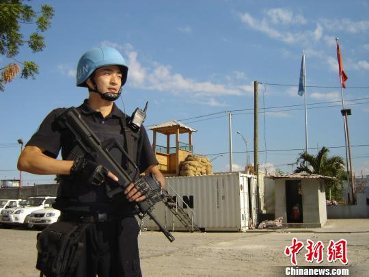 资料图为梁新宇在海外执行联合国维和任务。警方供图