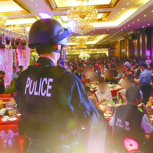 一场婚宴竟引来1500余名警方到场“祝贺”,何方人士如此有“面子”?6月10日晚,“飓风2017”反黑行动第一枪成功在深圳宝安打响。深圳警方经过缜密谋划,组织市局指挥部、刑警、特警、网警等单位,出动1500余警力,对以王某西为首的黑社会性质犯罪团伙进行收网,一举抓获犯罪嫌疑人142人,刑拘120人,缴获枪支11支,刀具500余把,冻结涉案资金800余万元。
