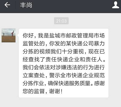 昨天下午,北环公司向记者发来回复称:关于网传视频,我们第一时间对盐城亭湖网点进行了调查。经核实,涉事快递员因对工作时间调整不满,在卸车时违规操作,我们已对其进行了批评教育,责令其作了深刻检查。在以后的工作中,我们也将加强对快递员的培训,确保为客户提供更优质的服务。