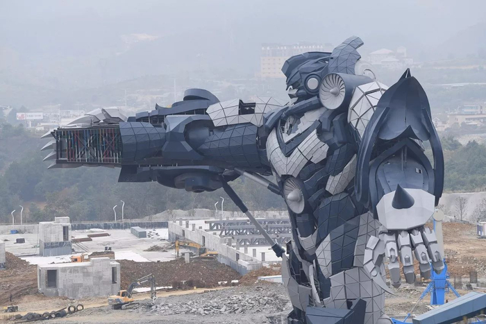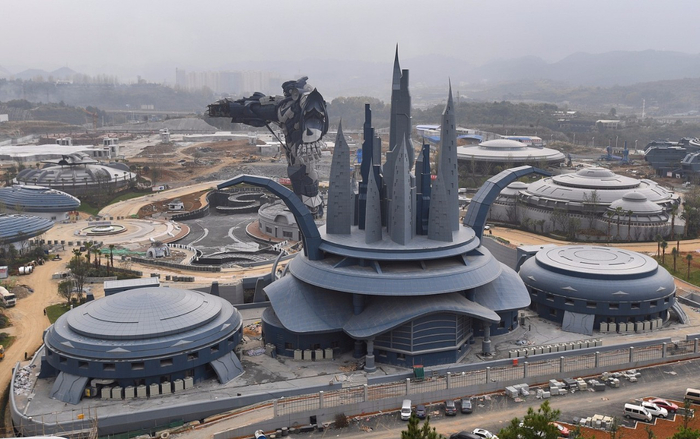 2017年10月26日,世界第一大变形金刚耸立在一个科幻主题公园的园区中央。