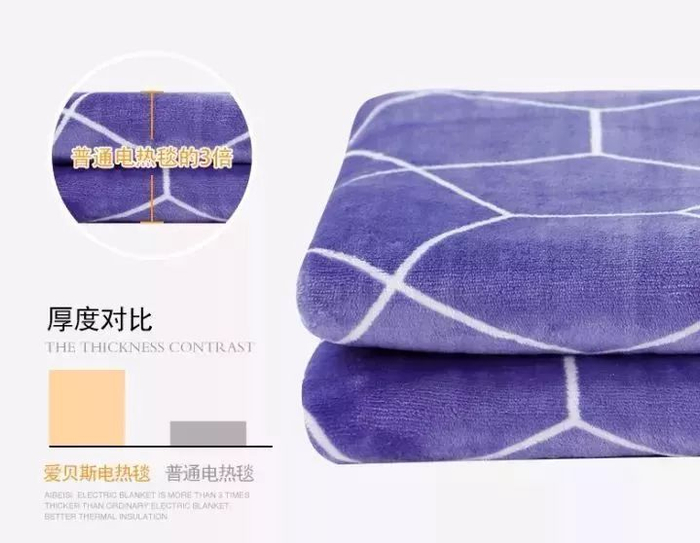 爱贝斯电热毯利用均匀编排发热丝,可以保证整个毯子均匀发热,绝对不会因为不稳定的持续高温导致烫伤,或者温度时高时低,也不会有忽冷忽热的感觉,让你安心睡到天亮。