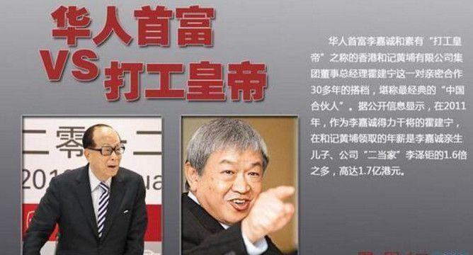 霍建宁,和记黄埔董事总经理,被认为是李嘉诚背后最为重要的男人。他在和记黄埔已工作38年,从最基层的主任会计,一步步成为李嘉诚最为信任的人,而最终让人们记住他是因为令人咋舌的超高年薪。