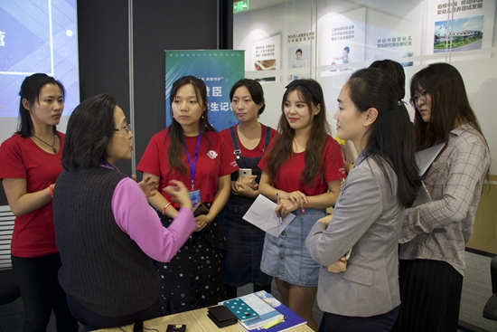 大学生记者与美赞臣营养品公司大中华区人力资源副总裁王耀南交流 江苏师范大学 王啸/摄