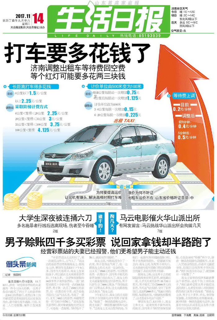 13日,济南市物价局发布《关于就规范客运出租车辅助运价等问题公开征求意见的公告》。根据公告,回空费将按照阶梯计费,等待费前5分钟每分钟加收0.4元,5分钟后每分钟加收0.5元。