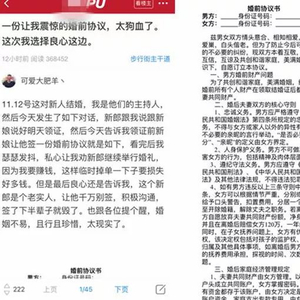 小可介绍,新郎告诉他,这份协议是新娘学法律专业的闺蜜起草。