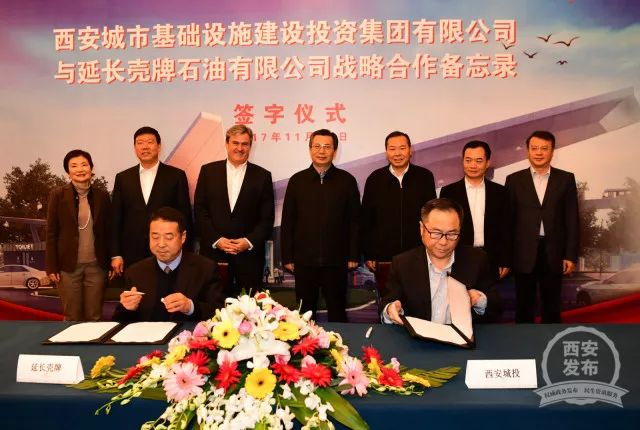 会上,西安城投集团与延长壳牌公司签订战略合作备忘录。据了解,双方将在引进壳牌集团新业态、新项目落地西安,打造便民服务综合体,推动长途交通沿线LNG加气站建设,加速城投集团交通燃气板块战略转型等方面开展合作。