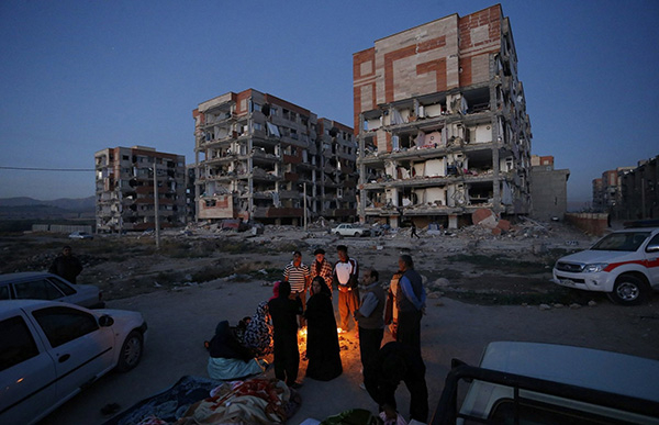 震后不到48小时伊朗宣布结束搜救,有灾民围着篝火过夜