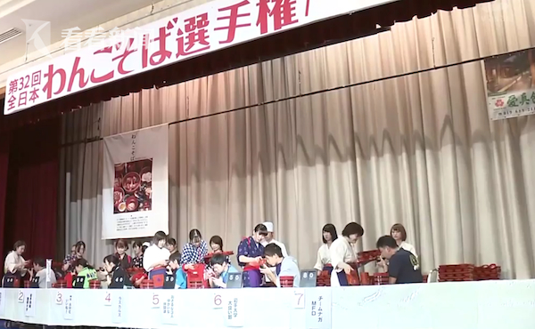 11月12日,岩手县举办第32届“全日本一口荞麦面锦标赛”。此次的参赛者中,除了四连霸的大叔井本英明以外,最令人注目的,就是首次参赛的小原尚子。她的外型苗条,完全不像会来参加大胃王比赛的人,但却在比赛一开始就发挥惊人“食力”,轻松飙破200碗,占据领先位置。