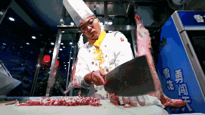 龙象火锅大刀手切鲜羊肉,