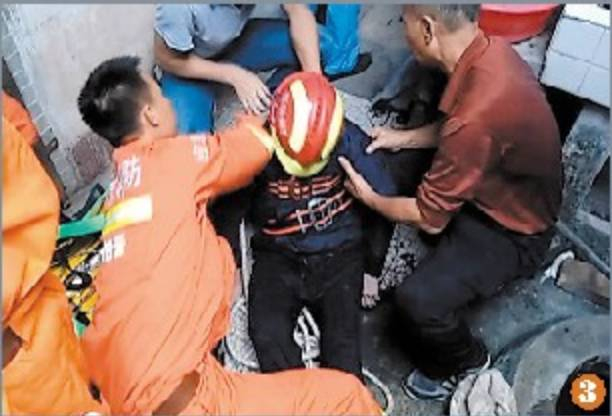 广州一名99岁的阿婆不慎坠入6米深井。老人儿子发现后,为不让母亲泡在冷水里,下到井中托举母亲长达2小时,直到消防员成功将老人救出。(人民日报微信)