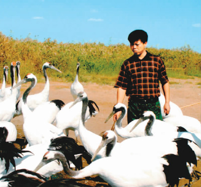 负责丹顶鹤的繁育和野外救护是徐建峰在扎龙自然保护区的主要工作。每年的4至6月是鹤卵的孵化期,他心中惦念的总是鹤巢、鹤卵的安全。