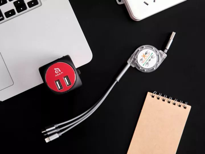 另一面有两个USB接口,配合插座使用,能同时给多个设备充电。