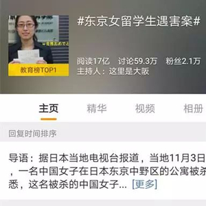 2016年11月3日,留日学生江歌在租住公寓前被杀,网络上一时间铺天盖地全是指责,质疑以江歌为代表的留学生群体的生活混乱。