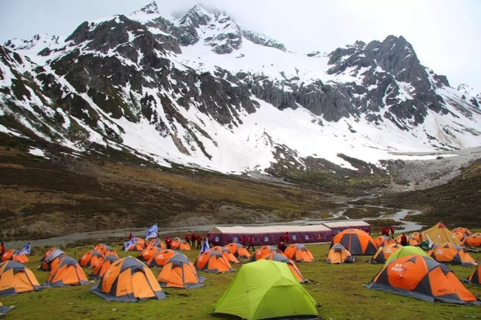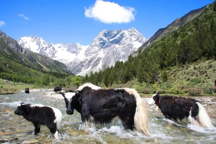 从白马雪山涓涓流下的两条雪水,形成了一个U字形的沟谷,交汇处就是白马雪山国家级自然保护区曲宗贡生态定位监测站所在地。