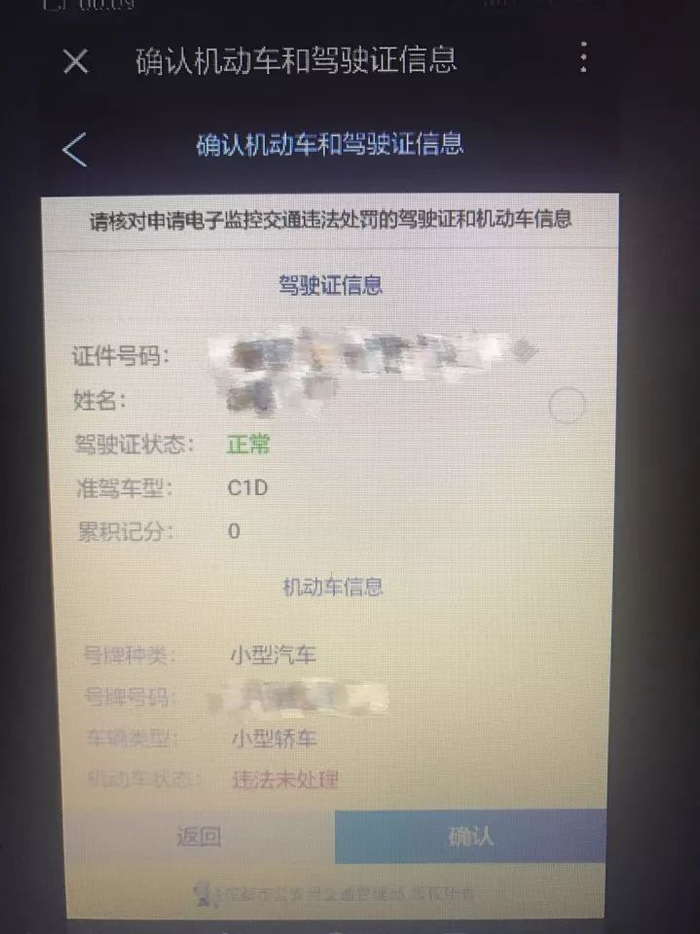 确认机动车和驾驶证信息,属实后,点击“确认”