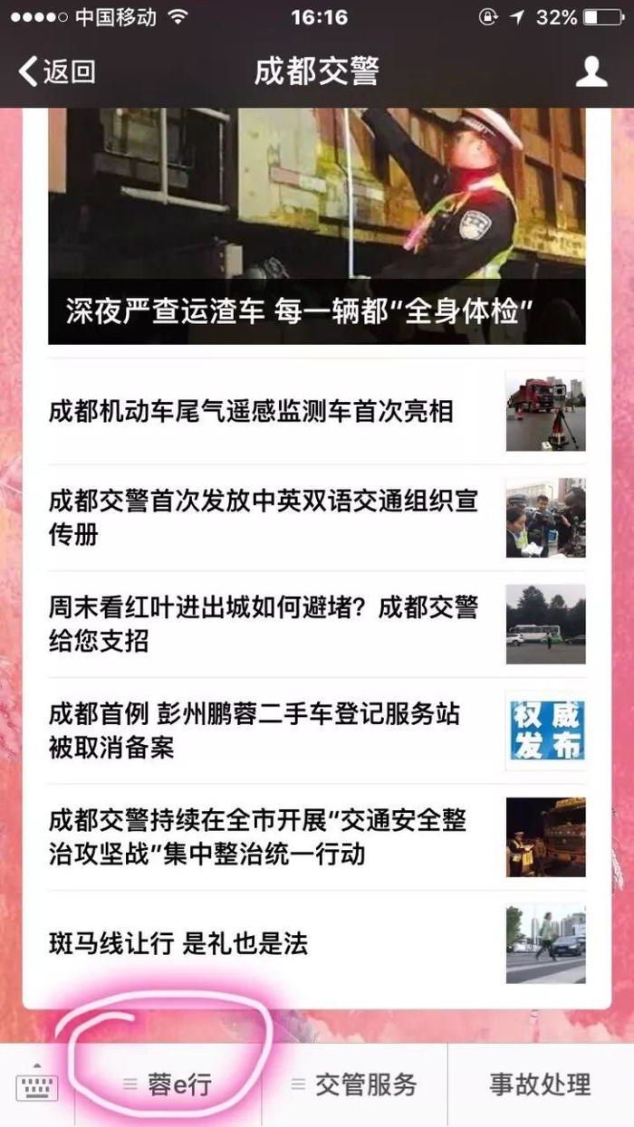 关注成都交警微信公众号