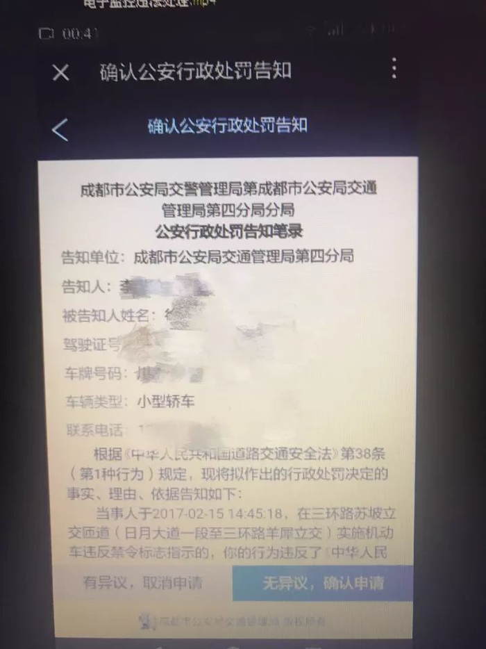 以上为大家展示的是电子眼违法处理的流程,那么如果大家在路上,被群众用手机、行车记录仪拍摄上传到蓉e行上的违法又该如何处理呢?