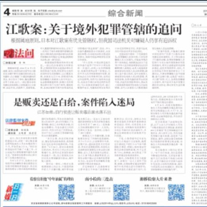 今天,由最高人民检察院主办的《检察日报》在4版刊登一篇题为《江歌案:关于境外犯罪管辖的追问》的文章,以下是报道全文⬇️