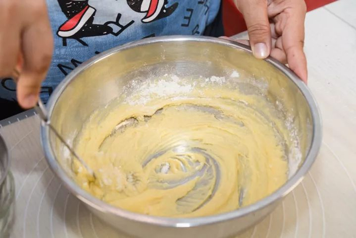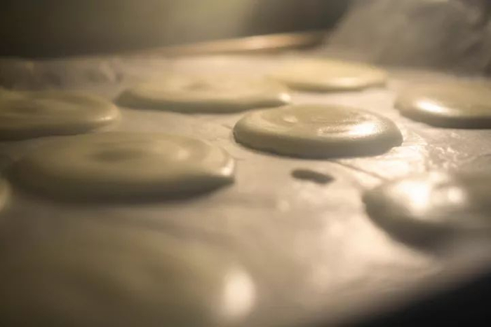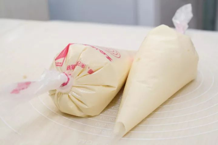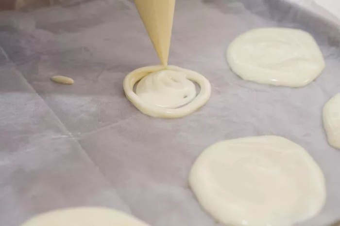 在裱花袋剪个口,然后挤在烤盘上转圈,圈圈大小要把握好,避免一个大一个小。