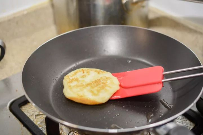 平底锅做法:如果家里没有烤箱,那么就拿一个不沾的平底锅,先刷上一层油,然后倒面糊,大小要一致,因为比较容易熟,所以用平底锅的话,一定要掌握火候,全程小火即可,底部成形后,立即翻过另一面,整个过程大约三十秒左右。