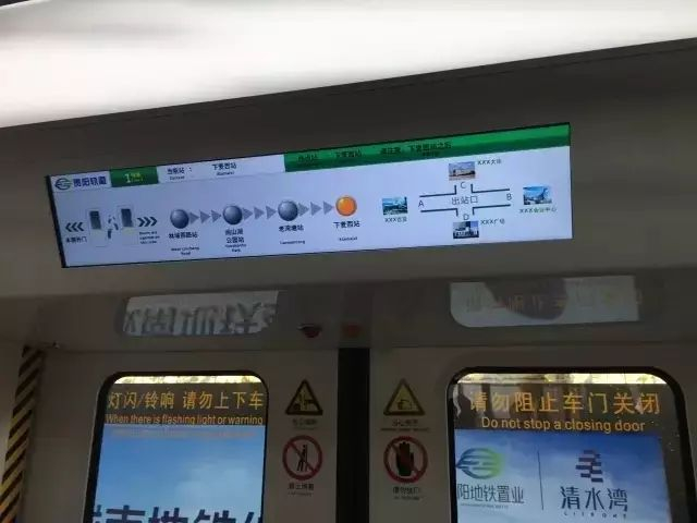 贵阳地铁1号线车厢内的报站显示屏