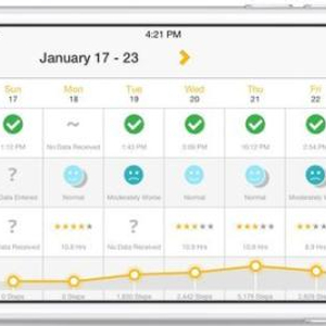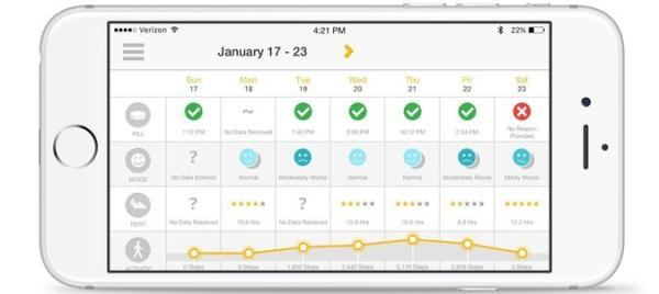 手机APP上会显示患者每日的服药情况,同时患者可以描述自己当日的心情、休息、活动的状态。 来源:《纽约时报》