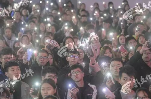 当600多名长大学生共同唱响《绿眼睛》,同学们不约而同的拿出手机,打开闪光灯搞搞举过头顶,随着歌声有节奏的左右晃动,台下顿时星光璀璨,现场气氛达到了高潮。