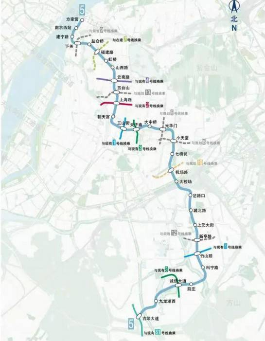 5号线起于江宁区的吉印大道站,终于鼓楼区的方家营站,线路全长37.4公里,全部为地下线,共设地下车站30座,最快2021年建成通车。