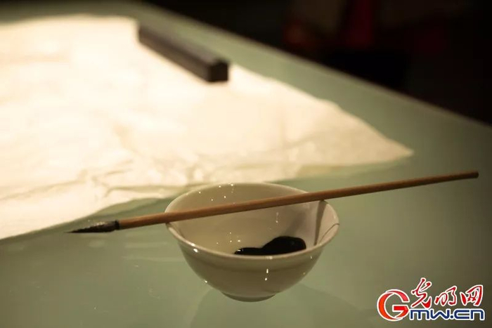 画板与画纸中间留有一空隙先在墨板上刷墨,
