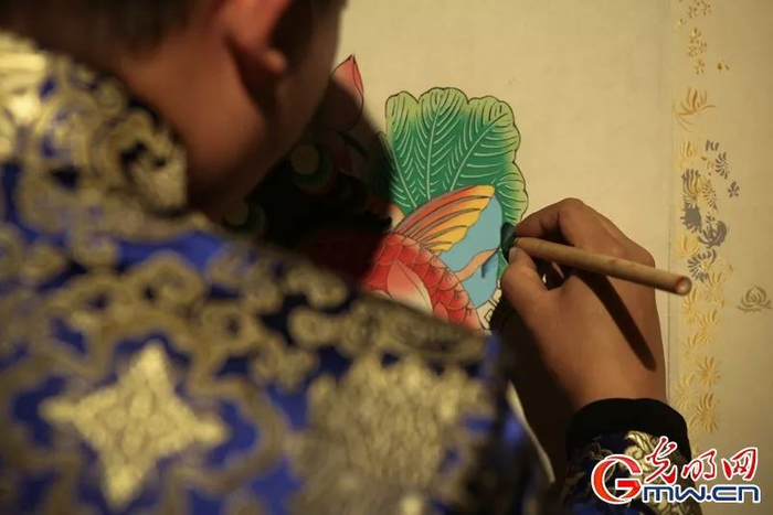 杨柳青木版年画传承人张凯通过直播展示杨柳青木版年画技艺——上色