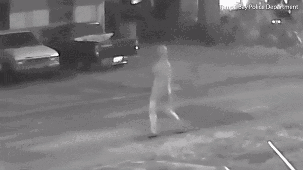第一宗枪杀案发生后,警方监控拍到一名身穿连帽衫的可疑人士正在逃离现场。