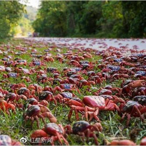 据英国《每日邮报》报道,澳大利亚圣诞岛又迎来了一年一度的红蟹大迁徙,为确保数百万只红蟹能够顺利从它们森林的家迁徙到太平洋,当地专门封锁了红蟹经过的道路,设置了路障,确保它们的安全。