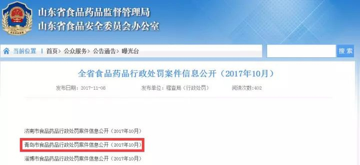 青岛市食品药品行政处罚案件信息公开(2017年10月) | ||||||