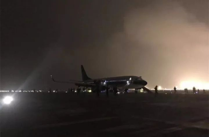 21时57分,飞机在36右跑道停稳后,机场各救援单位立即组织旅客疏散。