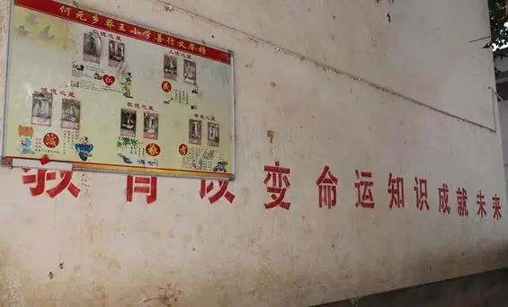 ▲莽王小学的墙上,写着“教育改变命运 知识成就未来”/苏倩敏 陈丽莎 俞海峰