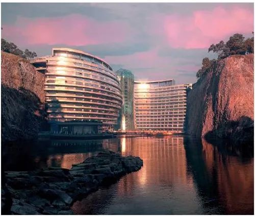 作为世界上第一个建立在废石坑里的五星级酒店,上海“世茂深坑酒店”近似于一个“疯狂的设想”,从设计开始就一反向天空发展的传统建筑理念,向地表负88米开拓建筑空间,成为人类建筑设计理念的革命性创举。