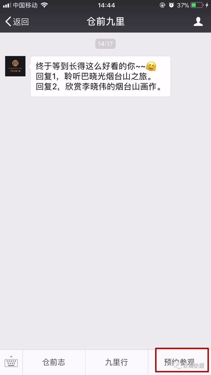 关注后,点击进入,在右下角你就会看到“预约参观”!