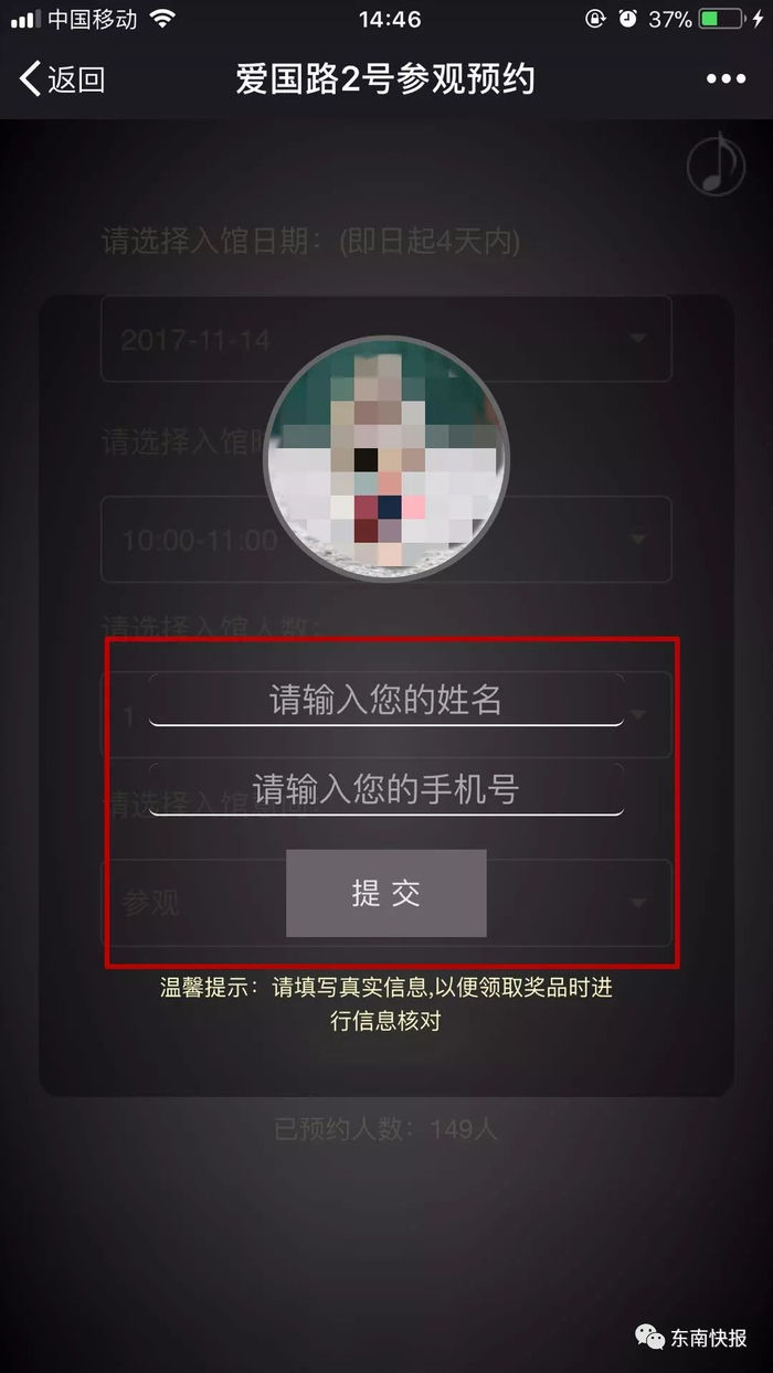 点击“预约参观”,进入爱国路2号参观预约界面