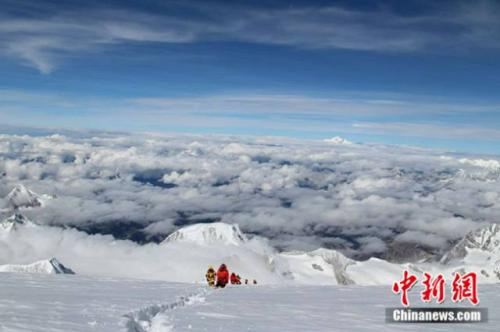 登山爱好者正在向洛堆峰顶峰冲刺(卢明文摄)