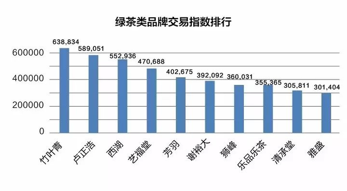 指数显示,最受消费者关注的绿茶品牌,大部分依然是线下强势品牌。去年在双十一中夺得绿茶类目桂冠的竹叶青,今年继续蝉联冠军。