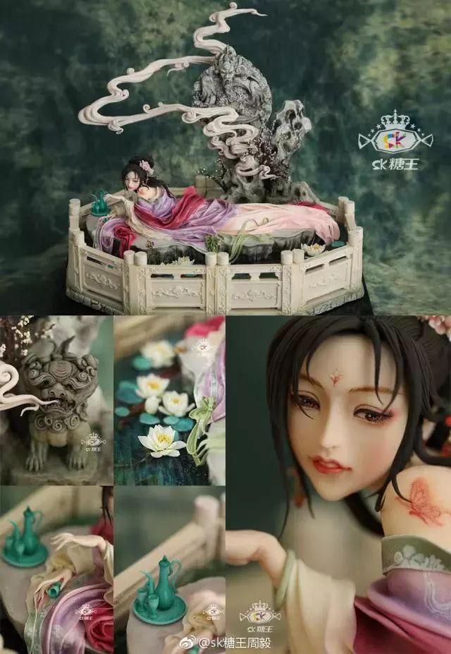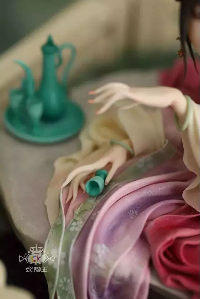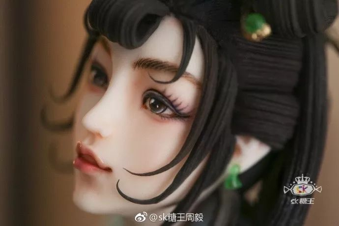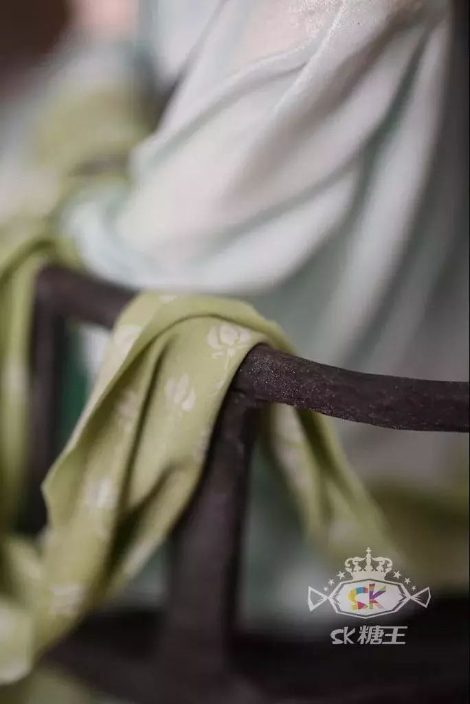 如果你足够细心,会发现欧洲版的翻糖人身上的衣裳都很厚,可以堆上去,但中国的罗纱散花裙之类的,薄如蝉翼,如果也按照西方的做法,就会显得很假。