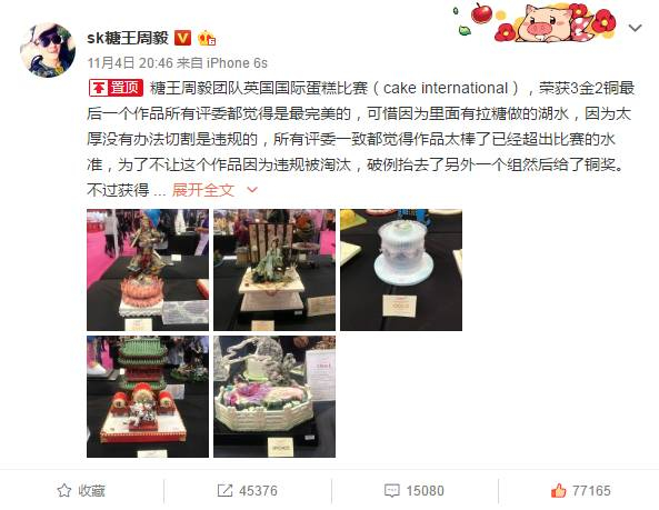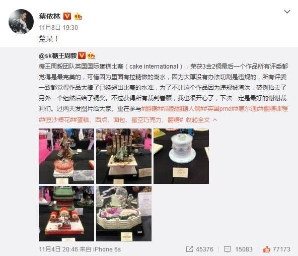 亲自拿下世界蛋糕比赛最高奖、带着团队斩获3金2铜的消息一传到国内,整个微博就炸了,分分钟登上了热搜,天后蔡依林也跟来点赞,连《人民日报》都来打疯狂Call。
