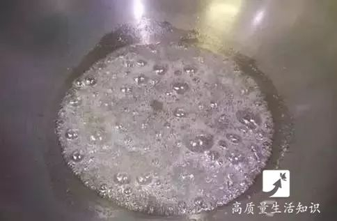 8、糖浆颜色变深,大泡转小泡时,要快速搅拌糖浆。