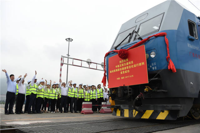 今年5月,满载21个集装箱货物的测试班列从重庆出发,48小时后抵达广西钦州港,再通过海运抵达马来西亚、新加坡等沿线国家,成功实施南向铁海联运通道的首次测试运行;