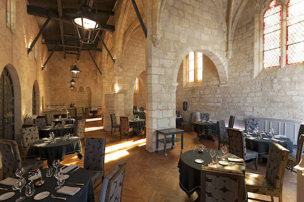 交叉券拱顶极高,石造拱柱将内部分成几部分,每一个空间都有扇带彩绘玻璃的尖顶窗做采光源。阳光灿烂的季节,彩绘玻璃的光影投射在墙壁、餐桌和酒杯上,如彩虹般的色彩令人情迷。