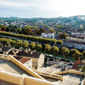 转过头,阿玛尼亚塔(Tour d'Armagnac)和圣玛丽大教堂(Cathedrale Sainte-Marie)就在大石阶的西北边。在蓝天衬托下,这两座由石灰岩建造的建筑显露出岁月经久的浅黄色。高40米的阿玛尼亚塔过去曾是一座监狱,也是中世纪大主教司法权力的象征。在历史悠久的古城里,标志性的建筑往往与宗教相关。当然,圣玛丽大教堂也不例外。