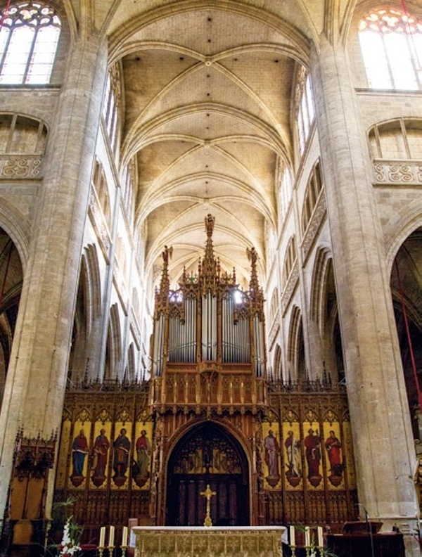教堂坐落在老城高处,于1489年建立。工程耗时近两个世纪,随圣雅各之路被列为世界遗产。随着时代的变迁,两种不同的建筑风格,从火焰式的哥特风格到文艺复兴式样皆能在教堂找到。圣玛丽大教堂居于中心的祭坛和116个座位的神职祷告席由橡木雕刻而成,其间的装饰雕像也引人注目:1500个人物肖像栩栩如生,每一个都保存完好,图案复杂精美,令人叹为观止。教堂的另外两件珍宝,则是阿尔诺·德莫尔(Arnaud de Moles)制作的18面彩绘玻璃和17世纪时法国最大型的管风琴。战争年代人们担心玻璃遭到毁坏,便将其拿下保存,直到战后才重装。因此,现在看到的玻璃依旧是16世纪作品。细看之下,色彩仍明艳饱满,拥有强烈的感染力。