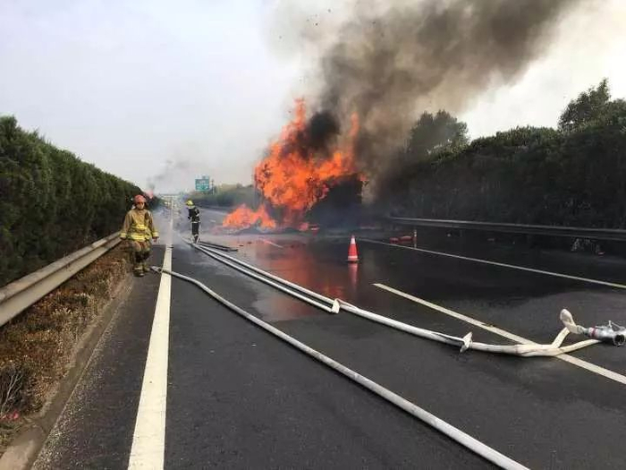 11月11日当天12点多,安徽省一家物流有限公司所辖的皖S重型半挂牵引车(快递车)在行驶到G60沪昆高速衢州段杭州方向426KM+800M(距常山东阁底收费站200米)左右时,突然燃起熊熊烈火......