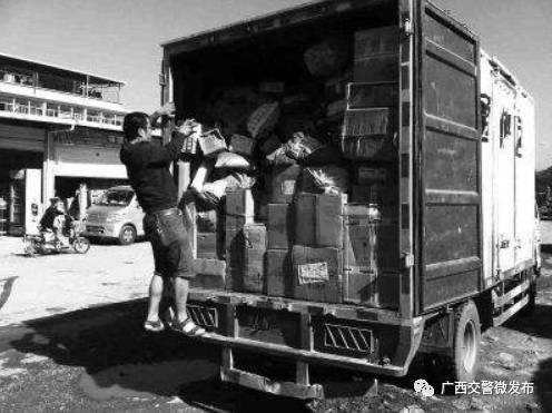 无独有偶,当天还有一辆运送快递的面包车被交警拦下。9时15分,南宁交警三大队执勤民警在五象银峰路口对一辆外观标识为圆通速递的面包车例行检查时,发现车内塞满货物。