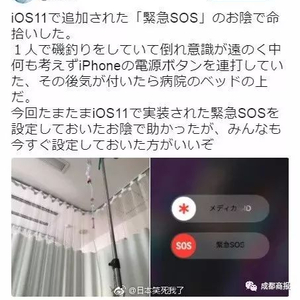 近日,有日本网友发文讲述了自己被iOS 11(iPhone最新操作系统)中新追加的“SOS紧急联络”功能救了一命的经过,并强烈安利大家开启这一新功能!